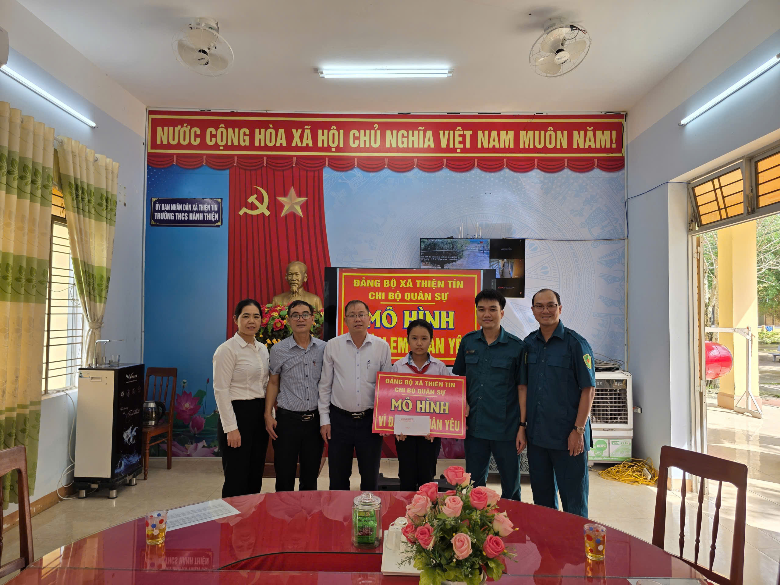 Mô hình “Vì đàn em thân yêu” được Chi bộ Quân sự xã Thiện Tín triển khai xây dựng từ tháng 12/2025, hỗ trợ hằng tháng 500.000 đồng/em, với mong muốn giúp học sinh có hoàn cảnh khó khăn trên địa bàn vươn lên trong cuộc sống, tiếp tục được học tập, rèn luyện và nuôi dưỡng ước mơ. Nguồn kinh phí do các đồng chí đảng viên Chi bộ, lực lượng dân quân tự vệ trên địa bàn xã đóng góp.